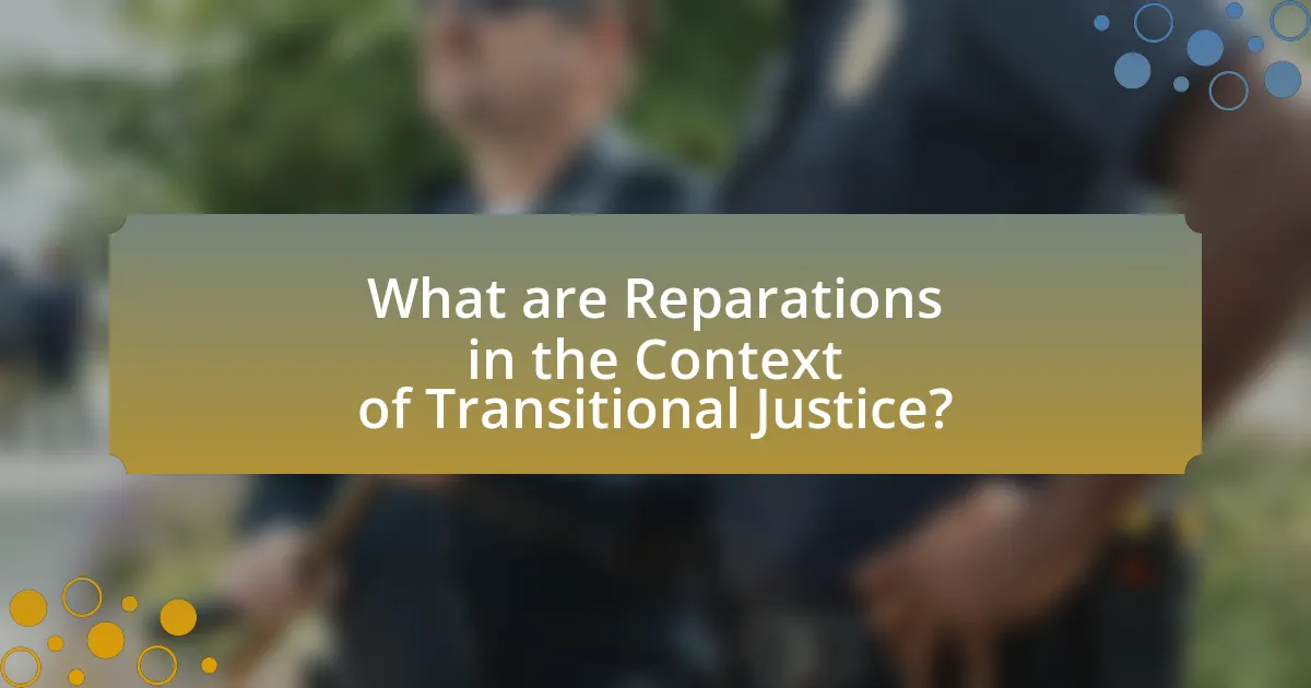 Reparations in the context of transitional justice refer to measures taken to compensate victims of human rights violations and restore their dignity after periods of conflict or authoritarian rule. These measures can include financial compensation, restitution of property, rehabilitation services, and public acknowledgment of the harm suffered. Historical examples, such as the reparations paid to Holocaust survivors by Germany, illustrate the role of reparations in addressing past injustices and promoting societal healing. Studies, including those by the United Nations, indicate that effective reparations can contribute to reconciliation and the prevention of future conflicts by acknowledging victims’ suffering and fostering a sense of justice.
