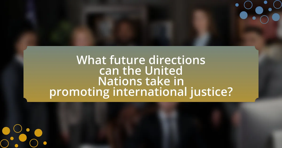The United Nations can enhance its promotion of international justice by strengthening its mechanisms for accountability and expanding its support for transitional justice processes. By establishing more robust frameworks for investigating and prosecuting war crimes and crimes against humanity, the UN can ensure that perpetrators are held accountable, as evidenced by the establishment of the International Criminal Court in 2002, which aims to prosecute individuals for such offenses. Additionally, the UN can promote restorative justice initiatives that focus on reconciliation and healing in post-conflict societies, as seen in various peace agreements that incorporate truth commissions. These directions not only align with the UN’s mission to uphold human rights but also respond to the increasing demand for justice from affected communities globally.