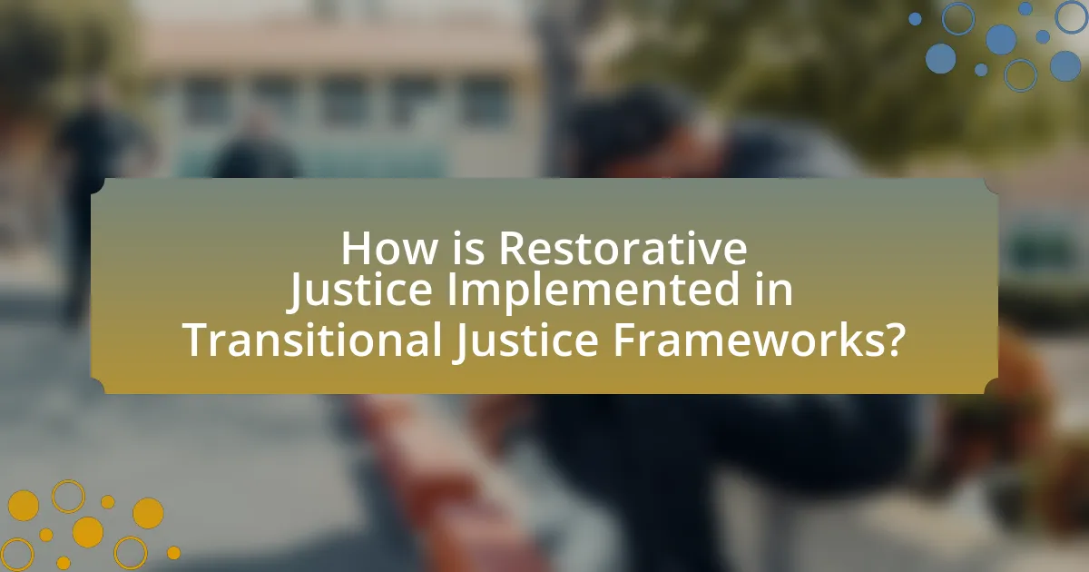 Restorative justice is implemented in transitional justice frameworks through mechanisms that prioritize dialogue, accountability, and healing among victims, offenders, and communities. These frameworks often include truth commissions, community-based reparations, and restorative dialogues that facilitate understanding and reconciliation. For instance, South Africa’s Truth and Reconciliation Commission exemplifies this approach by allowing victims to share their experiences and offenders to acknowledge their actions, fostering a collective healing process. This implementation is supported by the recognition that addressing past injustices through restorative practices can contribute to sustainable peace and social cohesion in post-conflict societies.
